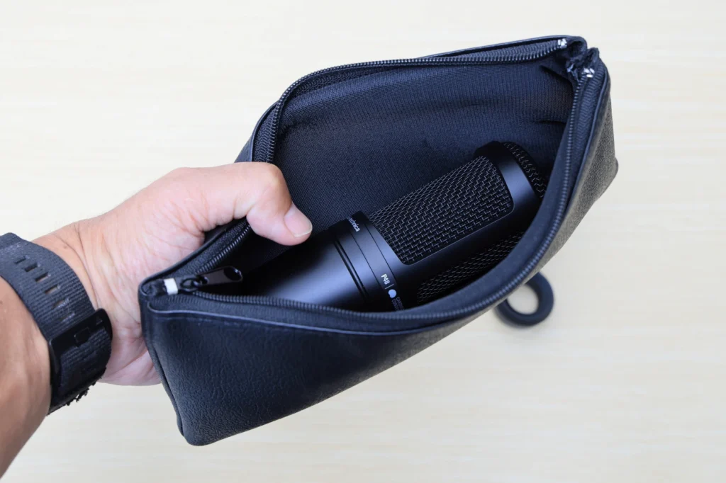 エントリークラスで、マイクポーチが付属するのは少し珍しいです。コンデンサーマイクは繊細なので、持ち運ぶ際の衝撃対策などにポーチは必須だと言えます。