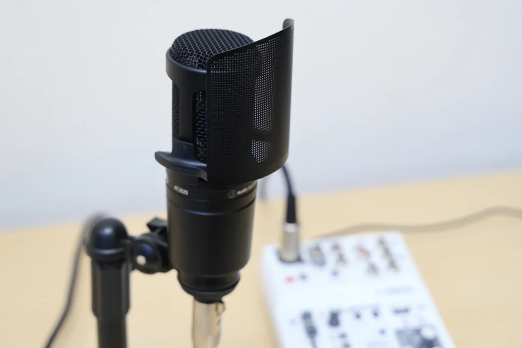 オーディオテクニカAT2020は、ポップノイズなどを比較的拾いやすいマイクです。