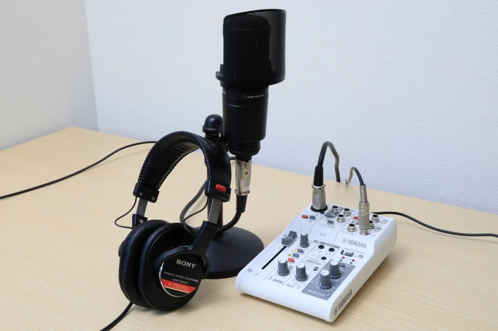 オーディオテクニカAT2020は、声以外の環境音もしっかりと拾います。