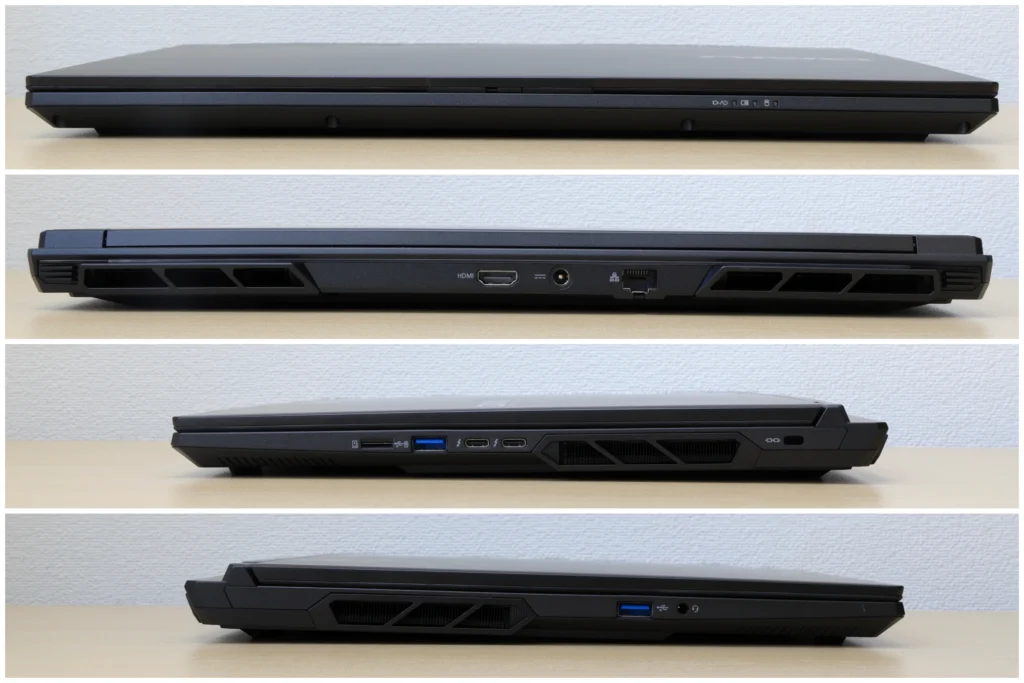 重量は約2.23kgと、高性能なクリエイターノートPCとしては比較的軽いものの、本機はサイズが大きめになっています。16型のノートパソコンなので、14型や15型よりも大きく、高性能な分、厚みもあるのがネックです。