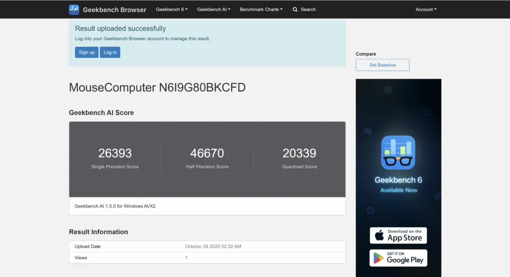 Geekbench AI は、画像生成やノイズ除去、言語処理といった AI推論系の処理速度 を測るベンチマークです。