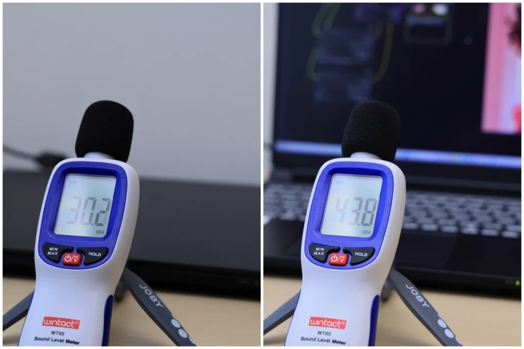 最後に動作音を簡単に測定しました。