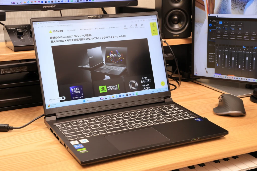 マウスコンピューター DAIV N6-I9G80BK-Cは、ローカルのAI生成やモデリングなどのクリエイティブな作業に最適な高性能ノートPCです。