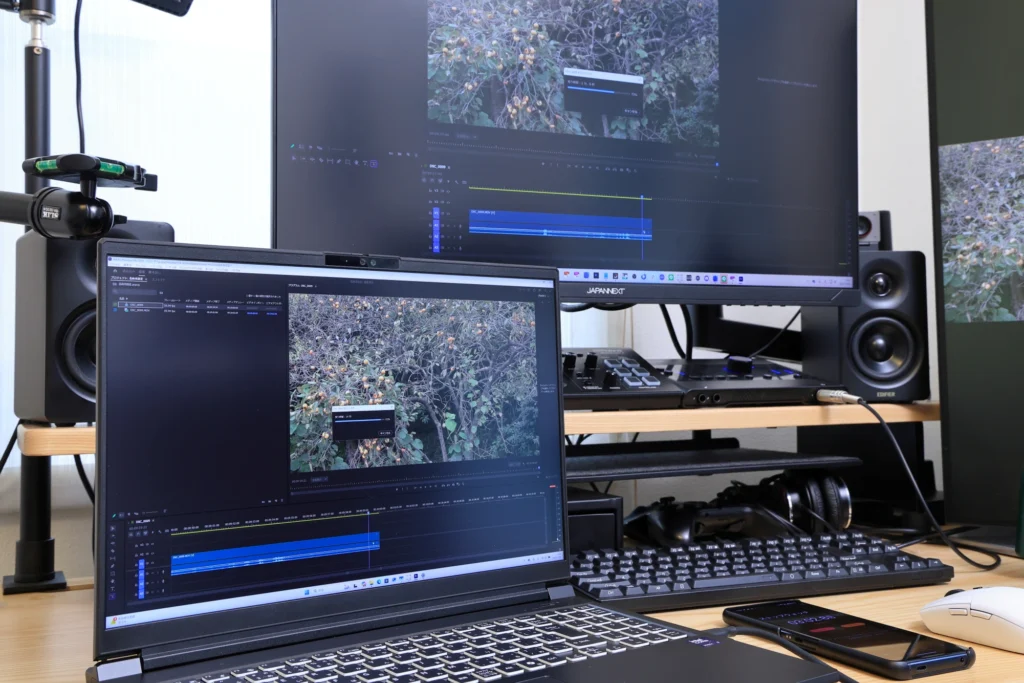 マルチ性能はノートとしては強く、Premiere Pro の書き出しやFlux1 / WAN2.2 の画像生成といった 長時間・連続処理 で差が出ます。