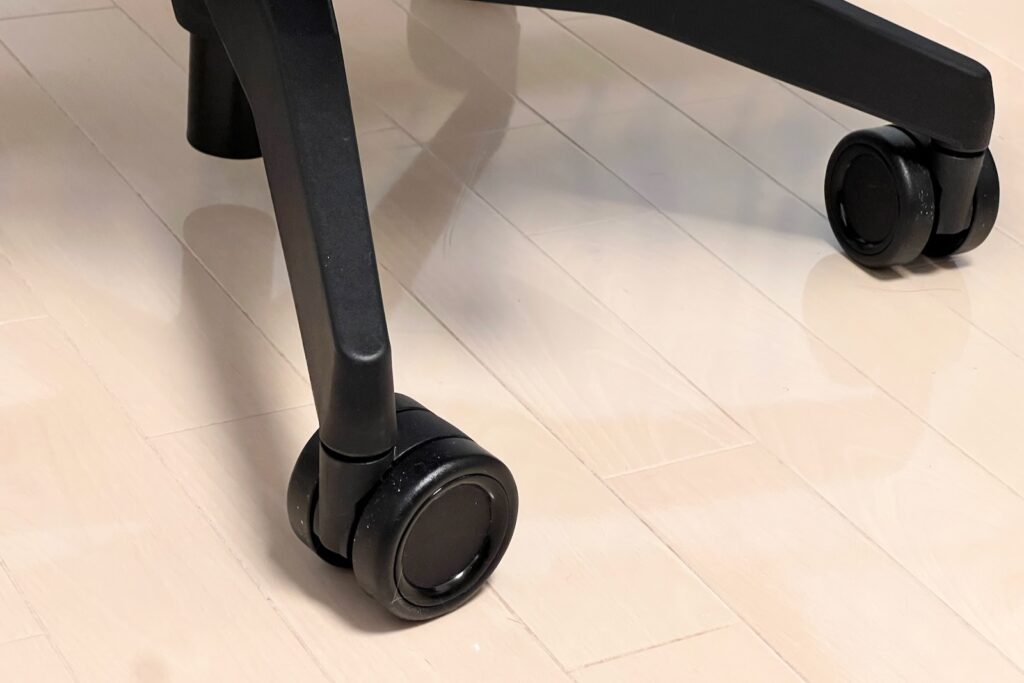 一般的なキャスターは、椅子を引いたときに高めの音が鳴ることが多いです。床との相性にもよりますが、場合によっては不快感を抱くような音が鳴ることさえあります。