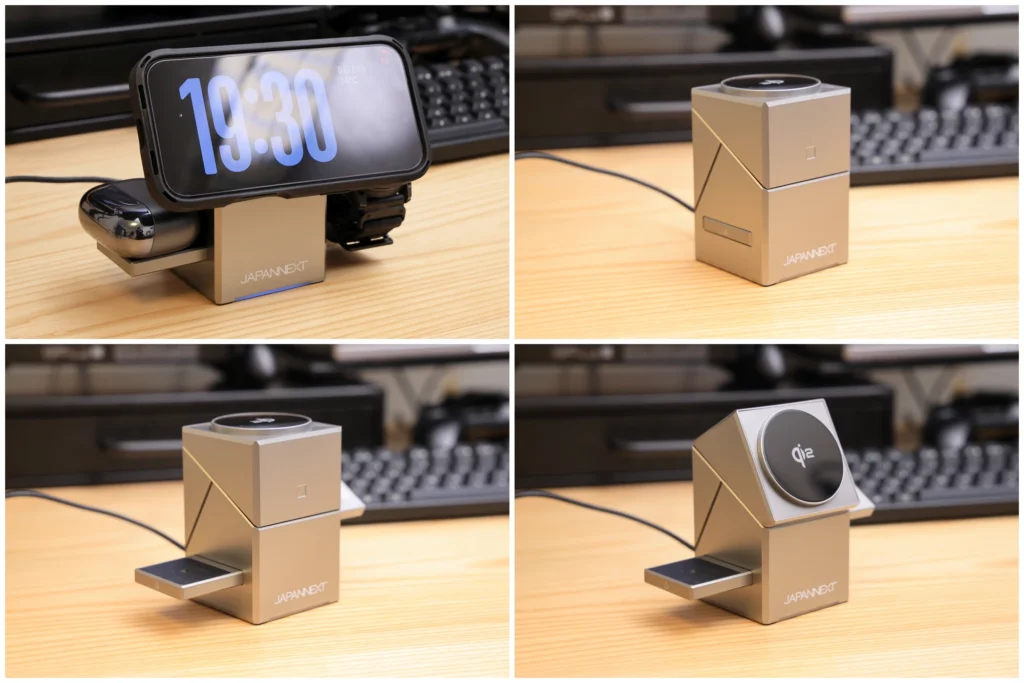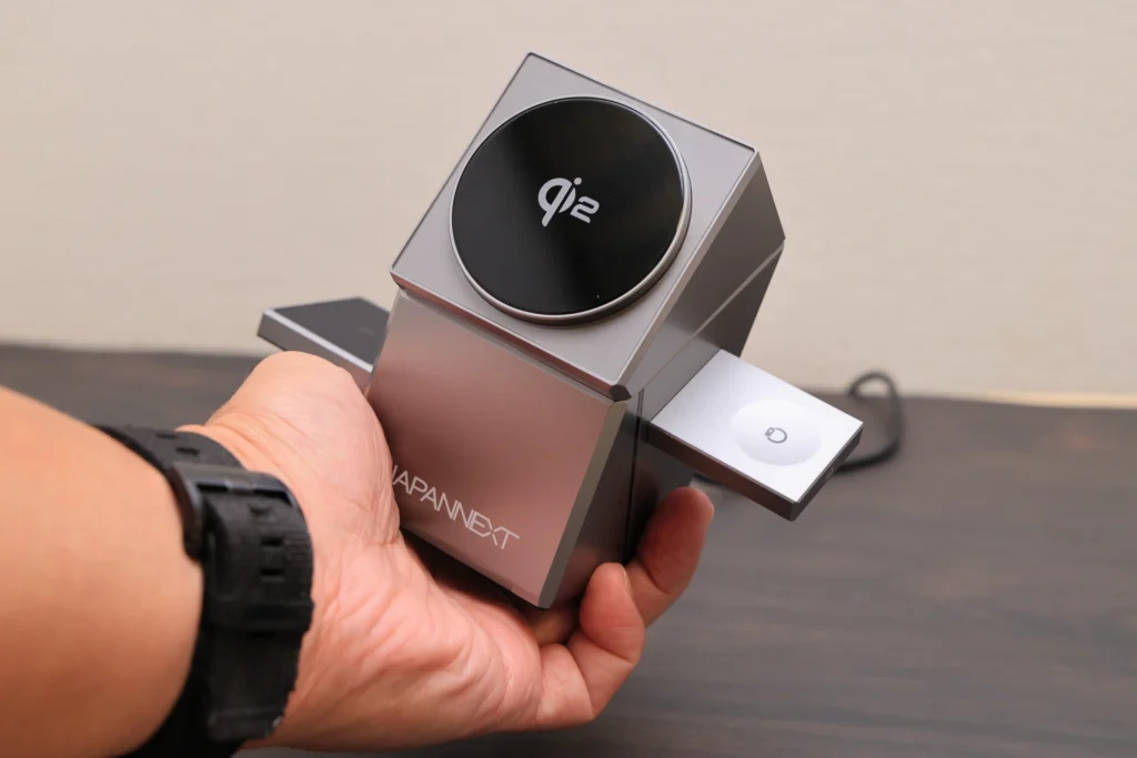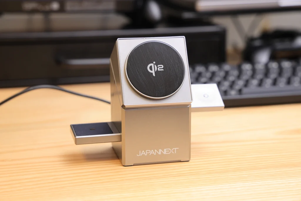 JAPANNEXT JN-CG-15SQ3N1は、1つで3台のデバイスを充電できるワイヤレス充電器です。