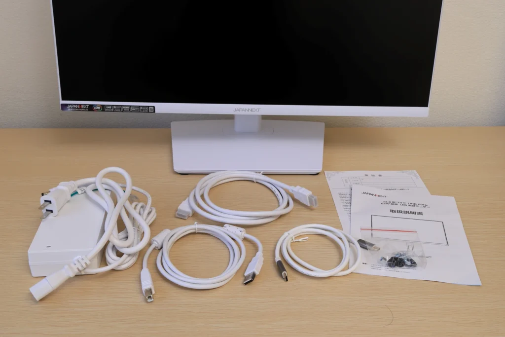 以上が、JN-IPS238U-HSPC6-Wの付属品です。