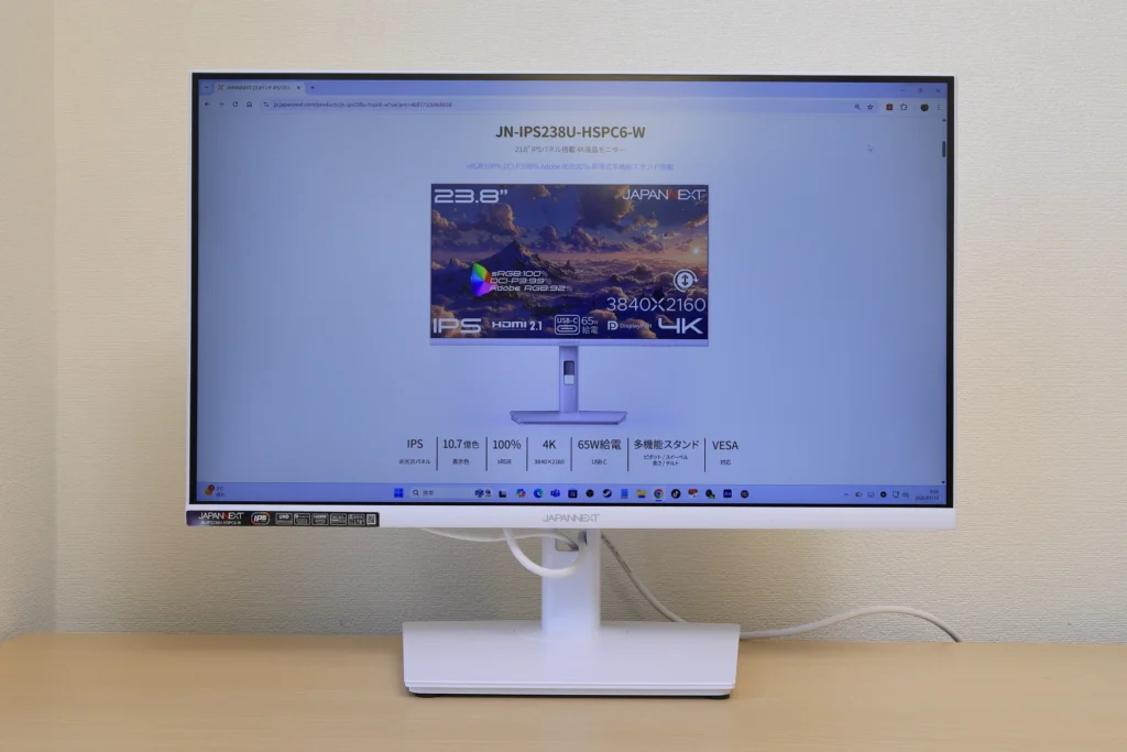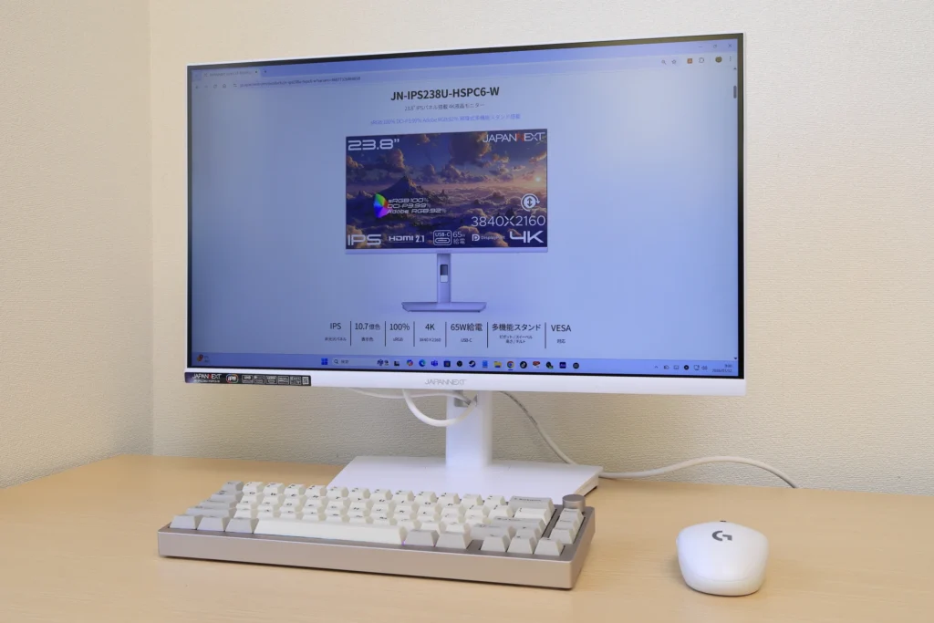JN-IPS238U-HSPC6-Wは、23.8インチというコンパクトサイズの4Kモニターです。
