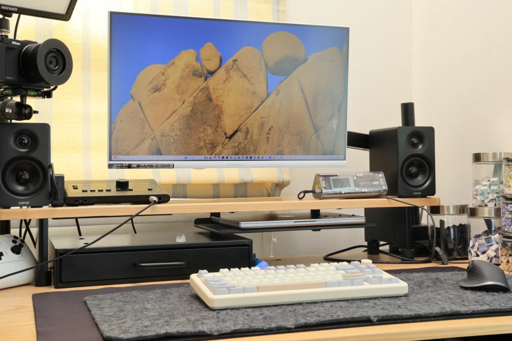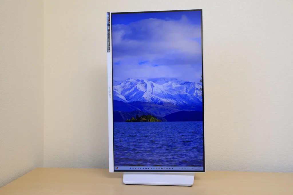 もちろん、通常の横向きモニターとしても便利です。モニターアームがあればより快適に使用できますが、なくとも使用にストレスがない程度の機能を備えた快適なスタンドだと言えます。