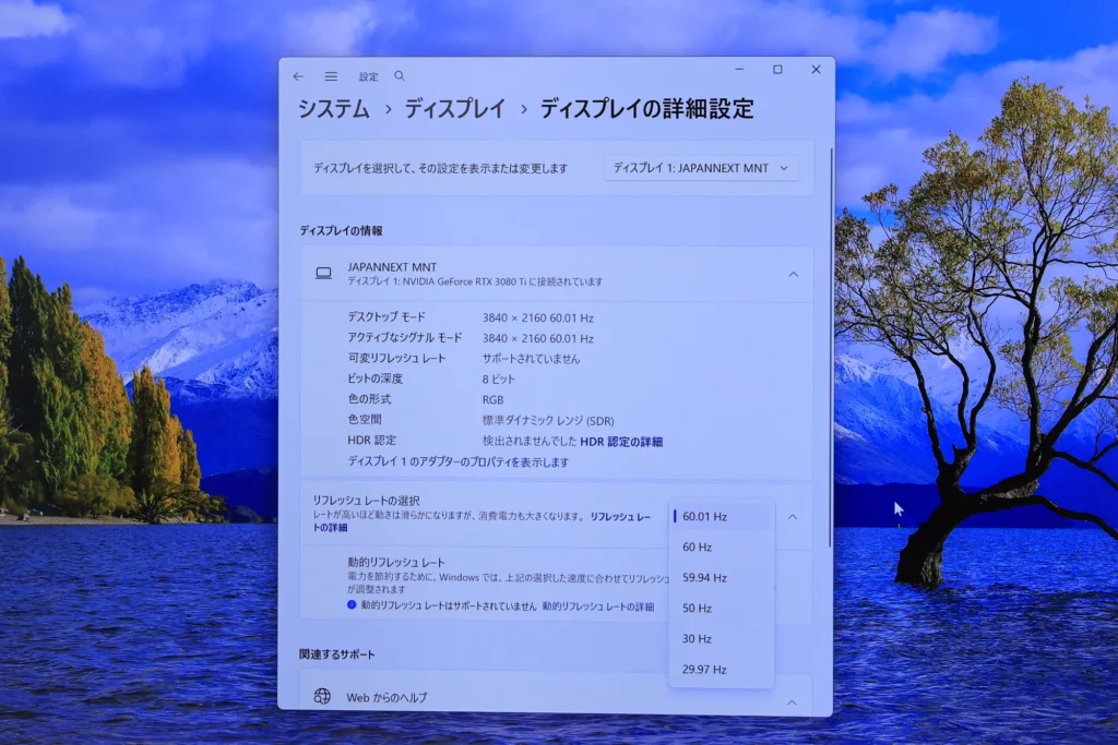 - リフレッシュレート:60Hz