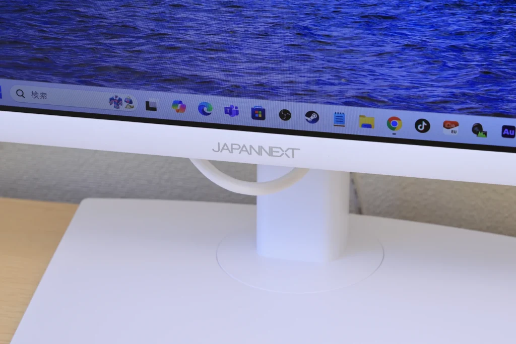 下部にはJAPANNEXTのロゴがありますが、白地にシルバーの文字なので、全く目立ちません。