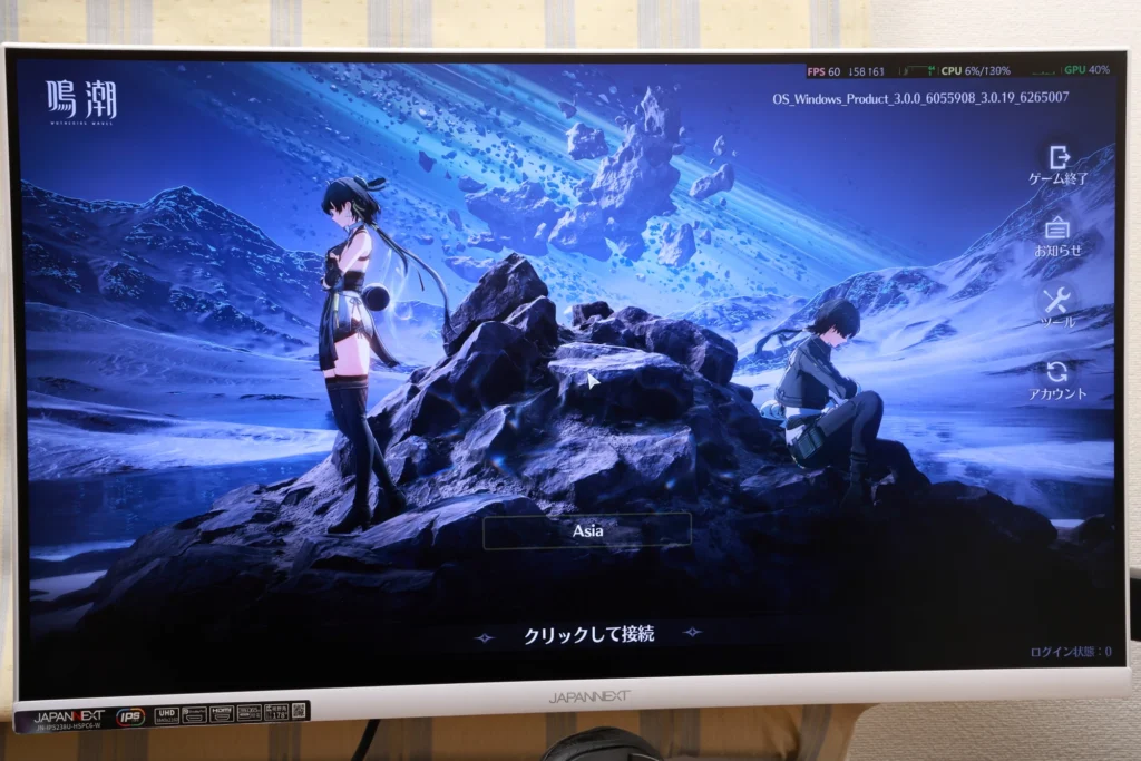 とはいえ、RPGなどでは一切問題ありません。基本的には作業用として使いつつも、息抜きでRPGやソシャゲ、ソロゲームをプレイしたい方には快適なモニターです。