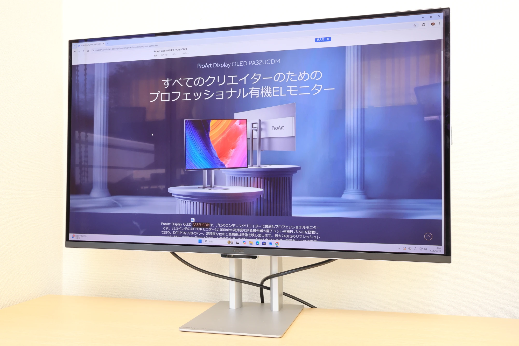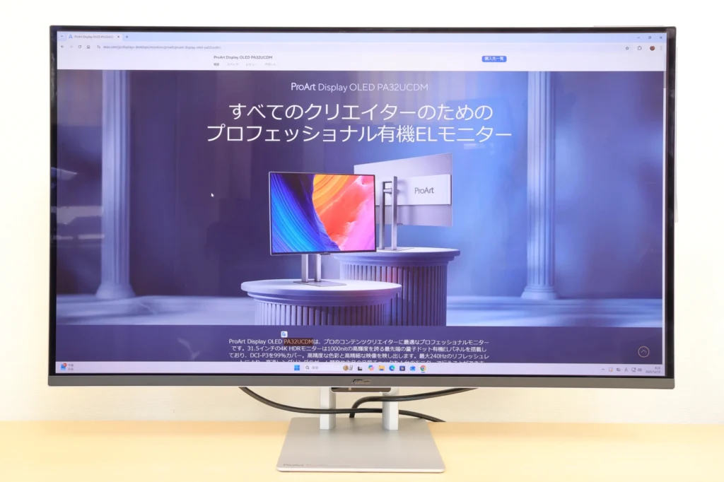 ProArt Display OLED PA32UCDMは31.5インチの4Kモニターで、サイズが大きいです。