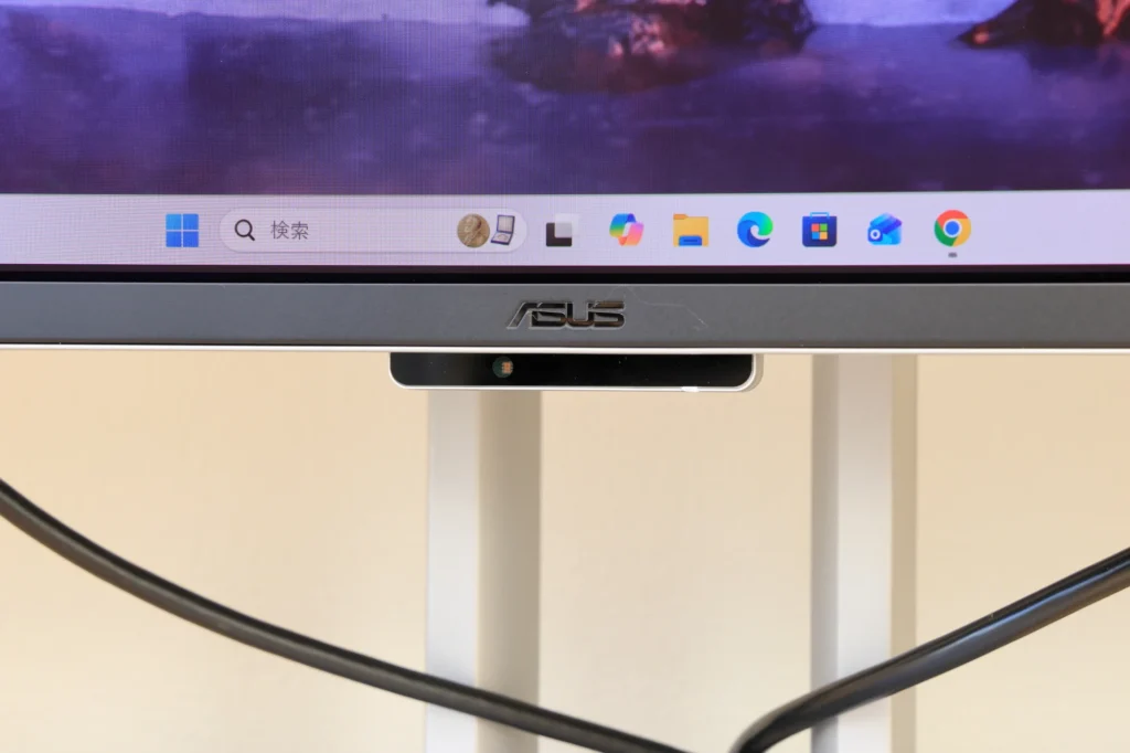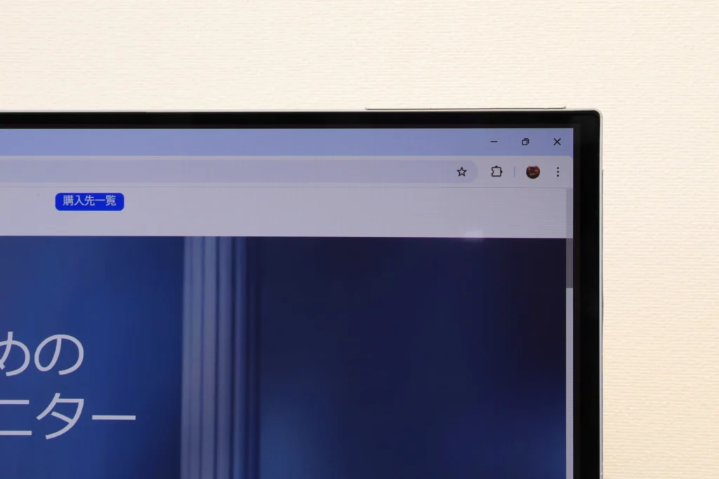 下部ベゼルはある程度の幅があるものの、一般的なモニターと比べると狭いです。