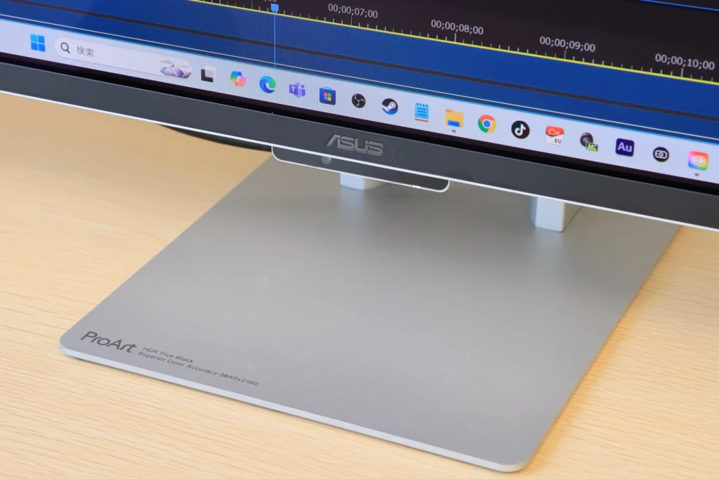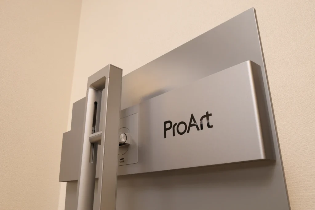 ProArt Display OLED PA32UCDMのデザインは、シンプルかつ特徴的です。