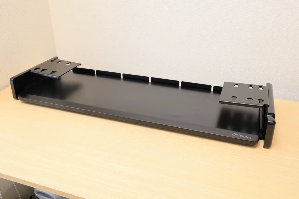 その拡張モジュールの中で、デスクの下部に取り付け、キーボードやマウスを配置するためのスライド式のキーボードトレイが発売されています。
