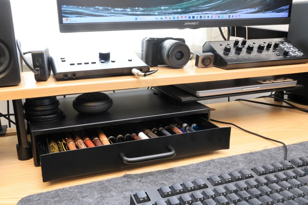 使わないときに圧迫感や生活感が出ないため、デスク全体が「広く・整って見える」点も魅力です。