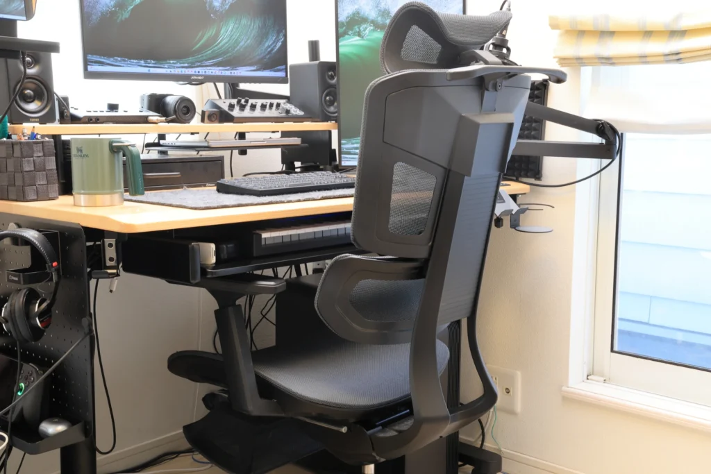 そのため、椅子をデスク下に収納したい場合は、デスクの昇降調整が必要になります。