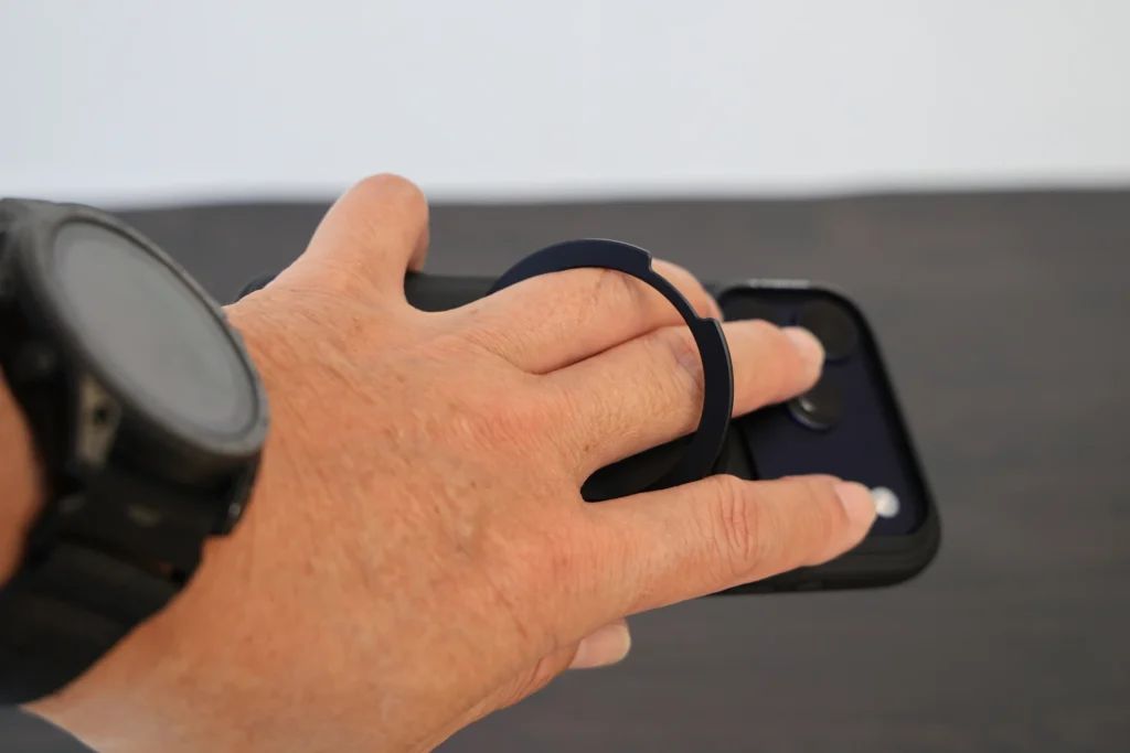 落下防止のバンカーリングとして使えるのは便利ですが、リング自体が薄い金属製で、角(エッジ)が立っています。